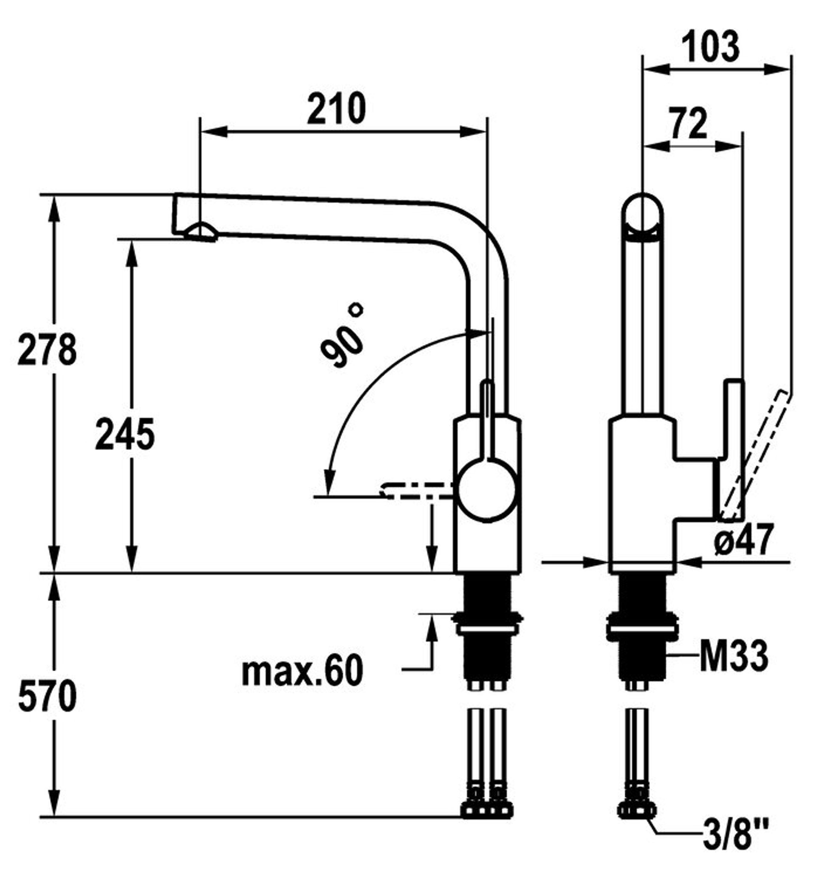 150° Schwenkauslauf: Genießen Sie maximale Flexibilität am Spülbecken – ideal für das komfortable Befüllen großer Gefäße und die Reinigung des gesamten Beckens.